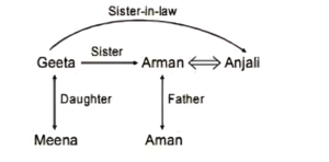 PGT Commerce Level-3 (HTEТ), Exam 2017Total Questions: 15071. Akash goes to house of Seema who is the neighbour of Geeta. Geeta has a daughter Meena who is studying in school. Arman is the father of Aman and is married to Anjali. Arman's sister is Geeta, then how Geeta is related to Anjali?A. SisterB. Sister-in-lawC. AuntyD. Mother-in-lawCorrect Answer: B. Sister-in-lawSolution:Geeta is Sister-in-law of Anjali.72. which one is correct?If □ means “<" Δ means ">" O means “=” and 2x Δ 3y, 2y O z,A. x □ zB. 4x □ 3zC. x Δ zD. 4x Δ 3zCorrect Answer: D. 4x Δ 3zSolution:2x Δ 3y ⇒ 2x > 3y2y O z ⇒ 2y = z y = z/2 2x > 3 × z/24x > 3z4x Δ 3z.73. If code word of HEATER is KBDQHO and code word of AIRY is DFUB, then code word of COOLER is:A. FLRIHOB. ALRIHVC. FRLIHOD. FLLIНОCorrect Answer: A. FLRIHOSolution:74. Find the wrong number in the series.3, 3, 6, 18, 72, 380, 2160A. 3B. 18C. 72D. 380Correct Answer: D. 380Solution:75. Which of the following words can be formed by using letters of word "VENTURESOME"?A. ROSTRUMB. SERMOUNTC. TRAVERSERD. SEVENTEENCorrect Answer: B. SERMOUNT76. How many pairs of the letters does the word DIFFICULT contain in such that the two letters of the pair have as many letters between them in the word as there are in the english alphabet?A. 5B. 4C. 2D. 3Correct Answer: D. 3Solution:77. Solve the equation?ABCDCorrect Answer: CSolution:78. The least perfect square, which is divisible by each of 21, 36 and 66, is:A. 231444B. 214344C. 213444D. 214434Correct Answer: C. 213444Solution:LCM (21, 36, 66) = 2772 (462)² = 213444 is divisible by 277279. Five years ago, the age of A was twice the age of B. After five years, their age would be in the ratio 3 : 2. Their present ages are:A. 15 years and 10 yearsB. 45 years and 35 yearsC. 19 years and 12 yearsD. 25 years and 15 yearsCorrect Answer: D. 25 years and 15 yearsSolution:80. A person leaves a place P for place Q at 5 AM and reaches place at 9 AM. Another person leaves Q for P on the same track at 6 AM and reaches P at 10 AM. They will meet each other at________.A. 8 AMB. 8 : 30 AMC. 7 AMD. 7 : 30 AMCorrect Answer: D. 7 : 30 AMSolution:Submit Quiz« Previous123456789101112131415Next »