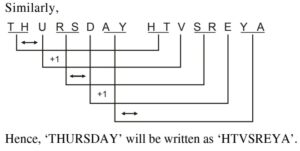 PGT Computer Science (Level-3), (HTET Exam 2020)Total Questions: 15061. In a code language, 'DISTANCE' is written as 'IDTATOEC' and 'DOCUMENT' is written as 'ODDMUFTN', then in same code language, 'THURSDAY' will be written as:A. HTRUDSYAB. HTVSREYAC. UHVSTEYAD. VIRUDSZBCorrect Answer: B. HTVSREYASolution:The coded pattern is as follows: The first two and IV, V and VII, VIII letters of the word are written in the reverse order and each of the remaining letters is moved one step forward to get the code.62. Kamal walks 10 m towards North. From there, he walks 6 m towards South. Then he walks 3 m towards East. In which direction is he with reference to his starting point?A. WestB. South-WestC. North-EastD. SouthCorrect Answer: C. North-EastSolution:63. In the first year, the population of a village increased by 5% and in the next year it decreased by 5%. If at the end of the second year, the population was 79,800, what was it at the beginning of the first year?A. 79,800В. 80,200C. 80,000D. 79,600Correct Answer: C. 80,000Solution:64. Find the wrong terms of the following series:1CV, 5FU, 9IT, 15LS, 170RA. 5FUB. 9ITC. 15LSD. 17ORCorrect Answer: C. 15LSSolution:65. The radii of two cylinders are in the ratio 2: 3 and their heights are in the ratio 5: 3. The ratio of their volumes are:A. 27: 20B. 20: 27C. 4: 9D. 9: 4Correct Answer: B. 20: 27Solution:66. Mr. X said about Mrs. Y, "Mrs. Y is the wife of the grandson of my mother." How is Mr. X is related to Mrs. Y?A. FatherB. GrandfatherC. HusbandD. Father-in-lawCorrect Answer: D. Father-in-lawSolution:67. How many independent meaningful words can 'HEARTLESS' be divided into without changing the order of the letters and using each letter only once?A. 1B. 2C. 3D. 4E. *Correct Answer: E. *68. In an examination, 27% students failed in English and 38% failed in Science. If 19% failed in both the subjects, then the percentage of passed in both the subjects is:A. 46%B. 54%C. 62%D. 81%Correct Answer: B. 54%Solution:69. Next terms of the following number series are:20, 20, 19, 16, 17, 13, 14, 11, ?, ?A. 10, 10B. 10, 11C. 13, 14D. 10, 9Correct Answer: A. 10, 10Solution:70. A man rows upstream 13 km and downstream 28 km taking 5 hours each time. What is the speed of water?A. 1½ km/hrB. 2 km/hrC. 2½ km/hrD. 3 km/hrCorrect Answer: A. 1½ km/hrSolution:Submit Quiz« Previous123456789101112131415Next »
