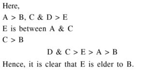 PGT Computer Science (Level-3), (HTET Exam 2020)Total Questions: 15071. If Shyam writes down all the integers from 1 to 100, then how many times does he write 3 ?A. 19B. 11C. 20D. 21Correct Answer: C. 20Solution:Clearly, from 1 to 100, there are ten numbers with 3 as the unit's digit: 3, 13, 23, 33, 43, 53, 63, 73, 83, 93 and ten numbers with 3 as the ten's digit: 30, 31, 32, 33, 34, 35, 36, 37, 38, 39. So, required number = 10 + 10 = 20.72. A is elder to B while C and D are elder to E. E lies between A and C and Cis elder to B. then which of the following statements is necessarily true?A. A is elder to С.B. C is elder to D.C. D is elder to С.D. E is elder to В.Correct Answer: D. E is elder to В.Solution:73. Among M, T, R, K and D, each having a different height, M is shorter only from T and D is taller only from K. Who will be the third tallest person among them?A. TB. DC. MD. RCorrect Answer: D. RSolution:Given, M is shorter only from T i.e., T > M and D is taller only from K i.e., D > K Hence, T>M > R > D> K Hence, R be the third tallest person among them.74. Solve the equations :A. 2¹¹⁄₁₂B. 2¹⁄₁₂C. 3¹¹⁄₁₂D. 3¹⁄₁₂Correct Answer: A. 2¹¹⁄₁₂Solution:75. After 5 years, father's age will be three times of his son's age. 5 years ago, father's age was 7 times of his son's age. The present age of the father is:A. 40 yearsB. 30 yearsC. 50 yearsD. 45 yearsCorrect Answer: A. 40 yearsSolution:76. A man is performing yoga with his head down and legs up. His face is towards the West. In which direction will his left hand be?A. NorthB. SouthC. WestD. EastCorrect Answer: A. NorthSolution:77. Two taps A and B would fill a tank completely in 30 and 36 minutes respectively. Both taps being opened, find when the tap A must be turned off so that the tank must be just filled in 18 minutes?A. After 15 minutesB. After 12 minutesC. After 14 minutesD. After 16 minutesCorrect Answer: A. After 15 minutesSolution:78. In how many years will a sum of ₹ 800 become ₹ 926.10 at 10% per annum interest compound half yearly?A. 3 yearsB. 1½ yearsC. 4½ yearsD. 2 yearsCorrect Answer: B. 1½ yearsSolution:79. The least square number, which is divisible by 8, 15 and 24 is equal to:A. 120B. 1800C. 3600D. 6400Correct Answer: C. 3600Solution:80. If the selling price of 6 pens is equal to the cost price of 8 pens, then profit/loss in percentage is:A. 25% profitB. 25% lossC. 33⅓ % lossD. 33⅓ % profitCorrect Answer: D. 33⅓ % profitSolution:Submit Quiz« Previous123456789101112131415Next »