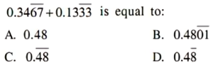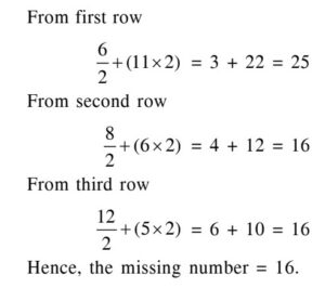 PGT Computer Science (Level-3), (HTET Exam 2021)Total Questions: 15071. The price of any item is increased by 20%. Find the reduction in the consumption of the item by a consumer so that there is no increase on his expenditure:A. 16⅔ %В. 15⅔ %C. 17⅔ %D. 16⅓ %Correct Answer: A. 16⅔ %Solution:72. Solve the equations ?A.B.C.D.Correct Answer: D.Solution:73. Two trains 132 meters and 108 meters long are running in opposite direction, one at the speed of 32 km/hr and another at the speed of 40 km/hr. In what time will they cross each other?A. 8 sec.B. 10 sec.C. 12 sec.D. 11 sec.Correct Answer: C. 12 sec.Solution:74. Solve the equations ?A.B.C.D.Correct Answer: B.Solution:75. What is the HCF of 11, 11.11, 0.11, 0.011?A. 0.011B. 1.1C. 0.11D. 0.111Correct Answer: A. 0.011Solution:76. The ratio of the areas of the incircle and circumcircle of a square will be:A. 1 : 4B. 4 : 1C. 1 : 2D. 2 : 1Correct Answer: C. 1 : 2Solution:77. Find the missing letters in the given letter series:a_cdaab_cc_daa_bbb_ccdddA. bdbdaB. bddcaC. dbbсаD. bbdacCorrect Answer: D. bbdac78. The number in the following question numbers are written according to certain pattern row-wise or column-wise. Identify the pattern and find the missing character accordingly.A. 18B. 16C. 12D. 10Correct Answer: B. 16Solution:79. Find the next term of the number series:127, 128, 136, 163, 227, _____ .A. 352B. 350C. 357D. 341Correct Answer: A. 352Solution:80. There are five different houses A to E in a row. A is to the right of B and E is to the left of C and right of A. B is to the right of D. Which of the house is exactly in the middle?A. AB. BC. DD. ECorrect Answer: A. ASubmit Quiz« Previous123456789101112131415Next »