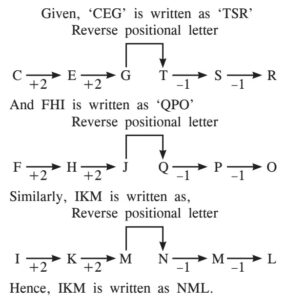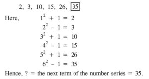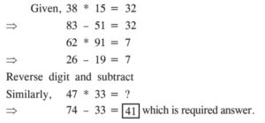PGT Computer Science (Level-3), (HTET Exam 2023)Total Questions: 15061. If A stands on his head with his face towards North, in which direction will his left hand point?A. North-EastB. WestC. EastD. North-WestCorrect Answer: C. EastSolution:A stand with his face towards North ⇒ His left hand will point in West direction. Similarly, A stand on his head with his face towards North ⇒ His left hand will point in East direction.62. A boat goes 20 km downstream in one hour and the same distance upstream in two hours. The speed of the boat in still water is:A. 10 km/hB. 12 km/hC. 13 km/hD. 15 km/hCorrect Answer: D. 15 km/hSolution:63. In a group of 15 people, 7 read Hindi, 8 read English, while 3 of them read none of these two. How many of them read Hindi and English both?A. 0B. 3C. 4D. 5Correct Answer: B. 3Solution:64. In a class of 35 students, A is placed 7th from the bottom whereas B is placed 9th from the top and C is placed exactly between these two. What is A's position from C?A. 9thB. 10thC. 11thD. 12thCorrect Answer: B. 10thSolution:65. In a certain code language 'CEG' is written as 'TSR' and 'FHJ' is written as 'QPO', then in the same code language 'IKM' is written as:A. NOPB. NOLC. NMКD. NMLCorrect Answer: D. NMLSolution:66. How many meaningful words can be formed with the letter EAML?A. 1B. 2C. 3D. 4Correct Answer: C. 3Solution:Given, EAML Meaningful words: MALE, LAME, MEAL Hence, 3 meaningful words can be formed with the letter EAML.67. The ratio of an interior angle to the exterior angle of a regular polygon is 7: 2. The number of sides of the polygon is:A. 7B. 8C. 9D. 11Correct Answer: C. 9Solution:68. Find the next term of the following number series:2, 3, 10, 15, 26, ?A. 33B. 34C. 35D. 36Correct Answer: C. 35Solution:69. Pipe A alone can fill a tank in 8 hours. Pipе В alone can fill it in 6 hours. If both the pipes are opened and after 2 hours pipe A is closed, then pipe B will fill the tank in:A. 2 hoursВ. 2½ hoursC. 3 hoursD. 3½ hoursCorrect Answer: В. 2½ hoursSolution:70. In a certain pattern, if 38 * 15 = 32, 62 * 91 = 7 and 74 * 81 = 29, then in the same pattern the value of 47 * 33 is:A. 40B. 41C. 38D. 53Correct Answer: B. 41Solution:Submit Quiz« Previous123456789101112131415Next »