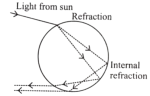 • Mirage is an optical phenomenon, in which the ray of light is incident at the bottom of the medium at such an angle that its reflection takes place in the same medium, which is called Total internal reflection. Generally, this happens when light enters the rare medium through a dense medium and the angle of incidence is greater than the 'critical angle'. In this event, there is the illusion of water on the roads or on the deserts. It can usually be seen during high sunlight.