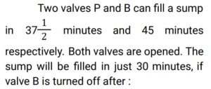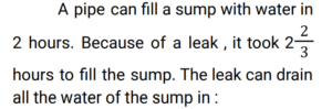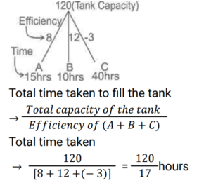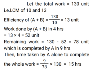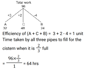 Pipe and Cistern (Railway Maths) (Part – II)Total Questions: 3921. Pipe A can fill a tank in 6 hours. Pipe B can empty it in 15 hours. If both the pipes are opened simultaneously, in how many hours the tank will be filled ? [ALP Tier II 23/01/2019 (Morning) ](a) 8(b) 12(c) 10(d) 9Correct Answer: (c) 10Solution:22. Pipes A and B can fill a tank in 15 and 10 hours respectively. Pipe C can empty it in 40 hours. If all the three pipes are opened simultaneously, the tank will be filled by: [ALP Tier II 08/02/2019 (Morning) ](a) 120/17 hours(b) 180/53 hours(c) 17/120 hours(d) 53/180 hoursCorrect Answer: (a) 120/17 hoursSolution:23. Two pipes, when working one at a time, can fill a cistern in 3 hours and 4 hours, respectively while a third pipe can drain the cistern empty in 8 hours. All the three pipes were opened together when the cistern was 1/12 full. How long did it take for the cistern to be completely full? [RRB ALP 09/08/2018 (Afternoon) ](a) 2 hour 10 minutes(b) 2 hours(c) 1 hour 45 minutes(d) 2 hour 11 minutesCorrect Answer: (b) 2 hoursSolution:24. Working together, pipes A and B can fill an empty tank in 10 hours. They worked together for 4 hours and then B stopped and A continued filling the tank till it was full. It took a total of 13 hours to fill the tank. How long would it take A to fill the empty tank alone ? [RRB ALP 09/08/2018 (Evening) ](a) 16 hours(b) 13 hours(c) 15 hours(d) 12 hoursCorrect Answer: (c) 15 hoursSolution:25. Pipes A, B and C are attached to an empty cistern. While the first two can fill the cistern in 4 and 10 hours, respectively, the third can drain the cistern, when filled, in 6 hours. If all the three pipes are opened simultaneously when the cistern is three-fifth full, how many hours will be needed to fill the cistern? [RRB ALP 10/08/2018 (Afternoon)](a) 36/11(b) 24/11(c) 48/11(d) 60/11Correct Answer: (b) 24/11Solution:26. Sita's bucket has thrice the capacity as Rama's bucket. It takes 60 turns for Sita's bucket to fill the empty drum. How many turns it will take for both the buckets of Sita's and Ramu's, having each turn together to fill the empty drum? [RRB ALP 10/08/2018 (Afternoon)](a) 30(b) 50(c) 40(d) 45Correct Answer: (d) 45Solution:27. Find the answer of given question? [RRB ALP 13/08/2018 (Afternoon) ](a) 9 min(b) 6 min(c) 10 min(d) 5 minCorrect Answer: (a) 9 minSolution:28. One pipe can fill an empty cistern in 4 hours while another can drain the cistern when full in 10 hours. Both the pipes were turned on when the cistern was half - empty. How long will it take for the cistern to be fill ? [RRB ALP 13/08/2018 (Evening) ](a) 6 hours 40 minutes(b) 3 hours 20 minutes(c) 5 hours 30 minutes(d) 4 hours 20 minutesCorrect Answer: (b) 3 hours 20 minutesSolution:29. Pipes A and C can fill an empty cistern in 32 and 48 hours, respectively while Pipe B can drain the filled cistern in 24 hours. If the three pipes are turned on together when the cistern is empty, how many hours will it take for the cistern to be 2/3 full? [RRB ALP 14/08/2018 (Afternoon) ](a) 96(b) 64(c) 48(d) 72Correct Answer: (b) 64Solution:30. Find the answer of given question? [RRB ALP 17/08/2018 (Morning) ](a) 6 hours(b) 11 hours(c) 8 hours(d) 15 hoursCorrect Answer: (c) 8 hoursSolution:Submit Quiz« Previous1234Next »