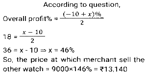 5. A merchant bought two watches for ₹9,000 each. He sold one watch at a loss of 10%. At what price (in) should he sell the other watch to earn a profit of 18% overall? [SSC CPO 27/06/2024 (2nd Shift)]