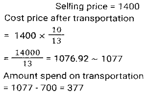 7. A grocer purchased 10 kg rice for ₹700. He spends some amount on transportation and then sells it for 1,400. If the percentage of profit made by the grocer is 30%, then what is the amount (in ₹)he spends on transportation? (Round off to the nearest integer) [SSC CPO 27/06/2024 (3rd Shift)]