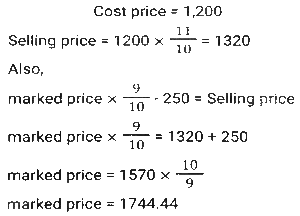 10. On the tag price, a seller offers a 10% discount and a cashback of ₹250. He still earns 10% profit. If the cost price is ₹1,200, then the tag price (rounded off to 2 decimal places) is_________. [SSC CPO 28/06/2024 (2nd Shift)]