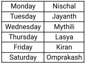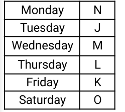 Now, from the above table we can clearly see that N’s class is on Monday.