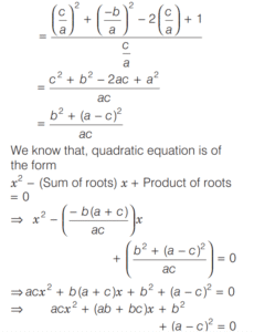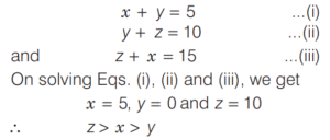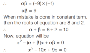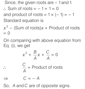 QUADRATIC EQUATIONS AND INEQUATIONS (CDS)Total Questions: 6761. In solving a problem, one student makes a mistake in the coefficient of the first degree term and obtains -9 and -1 for the roots. Another student makes a mistake in the constant term of the equation and obtains 8 and 2 for the roots. The correct equation was [2014 (I) Morning Shift](a) x² + 10x + 9 = 0(b) x² - 10x + 16 = 0(c) x² - 10x + 9 = 0(d) None of the aboveCorrect Answer: (c) x² - 10x + 9 = 0Solution:When mistake is done in first degree term, then the roots of the equation are -9 and -1.62. If m and n are the roots of the equation 27ax² + bx + c = 0, then the equation whose roots are (m² + 1) / m and (n² + 1) / n is [2014 (I) Morning Shift](a) acx² + (ab + bc)x + b² + (a - c)² = 0(b) acx² + (ab bc)x + b² + (a - c)² = 0(c) acx² + (ab bc) x + b² - (a - c)² = 0(d) acx² + (ab + bc)x + b² - (a - c)² = 0Correct Answer: (a) acx² + (ab + bc)x + b² + (a - c)² = 0Solution:For the given equation ax² + bx + c = 0, m and n are the roots. 63. The value of x² - 4x + 11 can never be less than [2014 (I) Morning Shift](a) 7(b) 8(c) 11(d) 22Correct Answer: (a) 7Solution:Let f (x) = x² - 4x + 1164. The expression 2x³ + x² - 2x - 1 is divisible by [2014 (I) Morning Shift](a) x + 2(b) 2x + 1(c) x - 2(d) 2x - 1Correct Answer: (b) 2x + 1Solution:65. If x + y = 5 , y + z = 10 and z + x = 15 then which one of the following is correct? [2014 (I) Morning Shift](a) z > x > y(b) z > y > x(c) x > y > z(d) x > z > yCorrect Answer: (a) z > x > ySolution:Given equations66. If the roots of the equation (a² - bc) x² + 2(b² - ac) x + (c² - ab) = 0 are equal, where b ≠ 0 , then which one of the following is correct? [2014 (I) Morning Shift](a) a + b + c = abc(b) a² + b² + c² = 0(c) a³ + b³ + c³ = 0(d) a³ + b³ + c³ = 3abcCorrect Answer: (d) a³ + b³ + c³ = 3abcSolution:Given equation is (a² - bc) x² + 2(b² - ac) x + (c² - ab) = 067. If the roots of the equation Ax² + Bx + C = 0 are -1 and 1, then which one of the following is correct? [2014 (I) Morning Shift](a) A and C are both zero(b) A and B are both positive(c) A and C are both negative(d) A and Care of opposite signsCorrect Answer: (d) A and Care of opposite signsSolution:Given equation is Ax² + Bx + C = 0 ...(i)Submit Quiz« Previous1234567