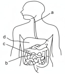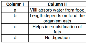 9. The diagram of the human alimentary canal is given below. Select the option that shows the correct matching of Column I with Column II. [RRC Group D 30/08/2022 (Morning)]