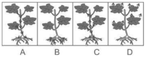 2. Which figure is the correct representation of the movement of food in phloem? [RRC Group D 18/08/2022 (Morning)]