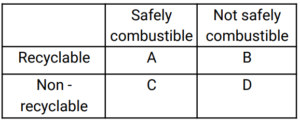 Solution:The materials that can be recycled items are glass, aluminum, plastic water bottles, metal scrap, different kinds of paper, electronics, computers, cellular phones. Non-recyclable items - Garbage, Food waste, Food-tainted items, Ceramics and kitchenware, Windows and mirrors, Plastic wrap, Packing peanuts and bubble wrap, Wax boxes.