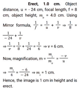 ⇒ 1/v = 1/40 = v = 40cm. In Convex Lens when v is positive then the image formed is real and inverted while the v is negative then the image formed is virtual and erect. Also, the image formed at center of curvature(C) because C = 2f ⇒ C = 40cm. So, Image is same size as object. Hence, Image formed is Real, inverted and same sized.