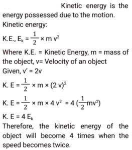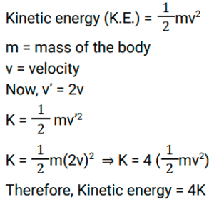 9. An object having a mass 'm' moving with a velocity ‘v' possesses a kinetic energy ‘K’. If its velocity is doubled, its kinetic energy will become: [RRB ALP Tier - I (20/08/2018) Evening]