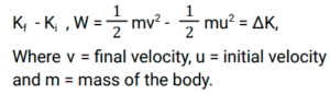 Work energy theorem - Sum of work done by all the forces acting on a body is equal to the change in the kinetic energy of the body.Example - Work done by all the forces =