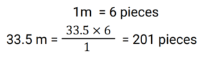 1. A tailor makes 6 pieces out of 1 m of cloth. If he has 33.5 m of cloth, then how many pieces can he make out of this cloth? [RRB NTPC 11/03/2021 (Evening)]