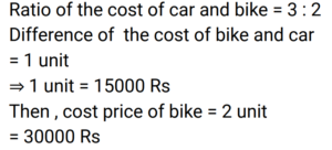 3. If the cost of a car and a bike are in the ratio of 3 : 2 and the cost of the car is Rs. 15000 more than the bike, then find the cost (in Rs.) of the bike. [RRB NTPC 12/03/2021 (Evening)]