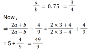 6. If a / b = 0.75, then the value of (2a + b) / (2a − b) + 4 / 9 is: [RRB NTPC 13/03/2021 (Morning)]