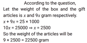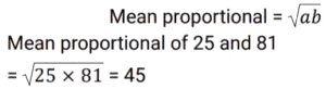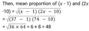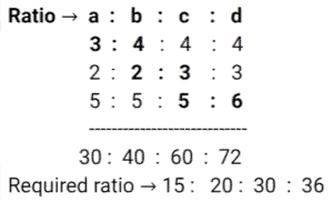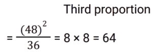 Ratio & Proportion (SSC) (Part-2)Total Questions: 5041. When ‘X’ is added to each of the numbers 7, 11, 18 and 23, then the number so obtained are in proportion. What is the mean proportional between the (x - 1) and (2x - 10) ? [SSC CHSL 03/07/2024 (4th Shift)](a) 78(b) 98(c) 48(d) 68Correct Answer: (c) 48Solution: 42. Convert 28% into the form of ratio. [SSC CHSL 04/07/2024 (1st Shift)](a) 25 : 7(b) 7 : 25(c) 7 : 18(d) 18 : 7Correct Answer: (b) 7 : 25Solution:43. A box filled with gift articles weighs 25 kg. If the weight of the box and the gift articles, respectively, are in the ratio 1 : 9, then the weight of the articles (in grams) is: [SSC CHSL 04/07/2024 (1st Shift)](a) 22500(b) 23500(c) 21500(d) 24500Correct Answer: (a) 22500Solution:44. Find the third proportion to 36 and 48. [SSC CHSL 04/07/2024 (3rd Shift)](a) 36(b) 54(c) 48(d) 64Correct Answer: (d) 64Solution:45. If a : b = 3 : 4, b : c = 2 : 3, and c : d = 5 : 6, then a : b : c : d is: [SSC CHSL 05/07/2024 (1st Shift)](a) 10 : 20 : 30 : 36(b) 15 : 25 : 30 : 36(c) 15 : 20 : 30 : 36(d) 15 : 20 : 35 : 36Correct Answer: (c) 15 : 20 : 30 : 36Solution:46. Solve it- [SSC CHSL 05/07/2024 (2nd Shift)](a) 12 : 15 : 20(b) 20 : 15 : 12(c) 20 : 12 : 15(d) 15 : 20 : 12Correct Answer: (b) 20 : 15 : 12Solution:47. The mean proportion of 0.14 and 2.24 is: [SSC CHSL 05/07/2024 (3rd Shift)](a) 0.56(b) - 2.39(c) 1.12(d) 1.02Correct Answer: (a) 0.56Solution:48. Find the fourth proportion to 1.25, 5.75 and 3.5 [SSC CHSL 05/07/2024 (4th Shift)](a) 4.5(b) 16.1(c) 12.5(d) 6.5Correct Answer: (b) 16.1Solution:49. Two numbers are in the ratio 2 : 3. Their sum is 135. Find the numbers. [SSC CHSL 08/07/2024 (2nd Shift)](a) 54, 81(b) 45, 90(c) 50, 85(d) 60, 75Correct Answer: (a) 54, 81Solution:50. Find the mean proportional between 25 and 81. [SSC CHSL 08/07/2024 (3rd Shift)](a) 12(b) 36(c) 81(d) 45Correct Answer: (d) 45Solution:Submit Quiz« Previous12345