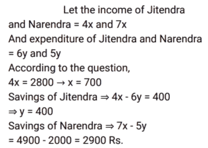 1. The ratio of income of Jitendra, and Narendra is 4 : 7 and the ratio of their expenditure is 6 : 5 respectively. If Jitendra saves Rs.400 out of Rs.2,800 income, then find the savings of Narendra. [SSC CHSL 13/03/2023 (2nd Shift)]