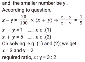 3. If the difference between the two numbers is 20 percent of their sum, then what is the ratio of larger number and smaller number ? [SSC CHSL 14/03/2023 (4th Shift)]