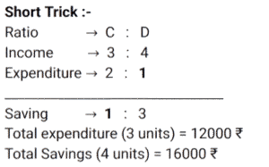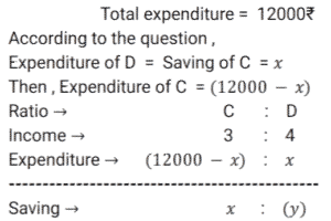 4. The ratio of incomes of C and D is 3 : 4 respectively. The sum of their expenditure is Rs. 12000. Savings of C is the same as that of the expenditure of D. What is the sum of their savings? [SSC CHSL 16/03/2023 (2nd Shift)]