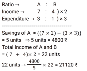 7. The ratio of the incomes of two employees is 7 : 4, and the ratio of their expenditures is 3 : 1. If each of them manages to save ₹4,800 per month, find the sum of their monthly incomes (in ₹). [SSC CGL Tier II (02/03/2023)]