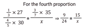 7. Find the fourth proportion of the following numbers: (1/3)rd of 27, (4/5)th of 30, (3/7) of 35. [Higher Secondary 24/06/2024 (Shift - 2)]