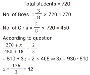 9. In a school of 720 students, the ratio of boys to girls is 3 : 5. Find how many new boys may be allowed to the school if 18 new girls are admitted, so that the ratio of boys to girls changes to 2 : 3. [SSC CPO 05/10/2023 (3rd Shift)]