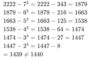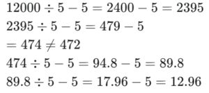 RBI GRADE ‘B’ OFFICER’S EXAM Held on : 06.02.2011 (Part-II)Total Questions: 5041. What should come in place of the question mark (?) in the following questions?∣ ?−45 ∣=40(1) 85 or - 85(2) 85 or 5(3) 5 or - 5(4) 40 or 5(5) None of theseCorrect Answer: (2) 85 or 5Solution:∣ ?− 45 ∣ = 40 ⇒ ? − 45 = ± 40∴?=45 + 40 or 45−40= 85 or 542. What should come in place of the question mark (?) in the following questions?(1) 28(2) 16(3) 12(4) 24(5) None of theseCorrect Answer: (4) 24Solution:43. What should come in place of the question mark (?) in the following questions?(1)(2)(3)(4)(5)Correct Answer: (4)Solution:44. What should come in place of the question mark (?) in the following questions??% of (4)? = 51.2(1) 15(2) 8(3) 5(4) 10(5) None of theseCorrect Answer: (3) 5Solution:45. What should come in place of the question mark (?) in the following questions?(1) 8(2) 36(3) 12(4) 6(5) None of theseCorrect Answer: (4) 6Solution:46. In the following number series only one number is wrong. Find out the wrong number.4 3 4.5 8.5 20 53 162.5(1) 3(2) 4.5(3) 8.5(4) 20(5) 53Correct Answer: (3) 8.5Solution:The pattern of the number series is:47. In the following number series only one number is wrong. Find out the wrong number.12000 2395 472 89.812.96 -2.408 -5.4816(1) -5.4816(2) 472(3) 12.96(4) -2.408(5) 2395Correct Answer: (2) 472Solution:The pattern of the number series is:48. In the following number series only one number is wrong. Find out the wrong number.1 8 28 99 412 2075 12460(1) 28(2) 99(3) 412(4) 2075(5) 12460Correct Answer: (5) 12460Solution:The pattern of the number series is:49. In the following number series only one number is wrong. Find out the wrong number.144 215 540 1890 850546777.5 304053.75(1) 215(2) 540(3) 1890(4) 8505(5) 46777.5Correct Answer: (1) 215Solution:The pattern of the number series is :50. In the following number series only one number is wrong. Find out the wrong number.2222 1879 1663 15381474 1447 1440(1) 1879(2) 1538(3) 1474(4) 1447(5) 1440Correct Answer: (5) 1440Solution:The pattern of the number series is:Submit Quiz« Previous12345