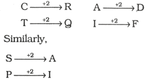 RBI GRADE ‘B’ OFFICER’S EXAM Held on : 06.02.2011 (Part-III)Total Questions: 5031. The positions of the first and the fourth letters of the word PLANET are interchanged, similarly, the positions of the second and fifth letters and third and sixth letters are interchanged. In the new arrangement thus formed, how many letters are there between the letter which is second from the right and the letter which is fourth from the left according to the English alphabetical order?(1) None(2) One(3) Two(4) Three(5) FourCorrect Answer: (4) ThreeSolution:32. The positions of how many alphabets will remain unchanged if each of the alphabets in the word WORTHY is arranged in alphabetical order from left to right?(1) None(2) One(3) Two(4) Three(5) More than threeCorrect Answer: (5) More than threeSolution:33. How many such pairs of letters are there in the word REASON, each of which has as many letters between them in the word (in both forward and backward directions) as they have between them in the English alphabetical series ?(1) None(2) One(3) Two(4) Three(5) More than threeCorrect Answer: (2) OneSolution:34. 'Writing' is related to 'Pen' in the same way as ______ ?(1) 'Singing' is related to 'Music'(2) 'Stitching' is related to 'Needle'(3) 'Dancing' is related to 'Exercise'(4) 'Carpenter' is related to 'tools'(5) 'Paper' is related to 'book'Correct Answer: (2) 'Stitching' is related to 'Needle'Solution:Pen is used to write some- thing. Similarly, stitching is done by needle.35. If it is possible to make only one meaningful word with the second, third, eighth and ninth letters of the word 'CONFLICTED', which would be the second letter of the word from the left? If more than one such word can be formed, give 'A' as the answer. If no such word can be formed, give 'Z' as your answer.(1) A(2) T(3) O(4) N(5) ZCorrect Answer: (1) ASolution:Meaningful Words ⟹ NOTE, TONE36. In which of the following expressions will the expression P < M be definitely true?(1) M P ≥ S(2) M ≥ S = P < F(3) Q < M < F = P(4) P = A < R < M(5) None of theseCorrect Answer: (4) P = A < R < MSolution:P = A < R < M ⟹ P < M37. In a class of 42 children, Joseph's rank is sixteenth from the top. Kevin is seven ranks below Joseph. What is Kevin's rank from the bottom ?(1) 22nd(2) 20th(3) 19th(4) 23rd(5) 25thCorrect Answer: (2) 20thSolution:Kevin's rank from the top⟹ 16 + 7 = 23rdKevin's rank from the bottom ⟹ 42 − 23 + 1 = 20th38. The following questions are based on the alphabetical series given below:C L R T B Q S M A P D I N F JK G Y XFour of the following five are alike in a certain way and so form a group. Which is the one that does not belong to the group?(1) LBT(2) SPA(3) IJF(4) PID(5) BMSCorrect Answer: (4) PIDSolution:39. The following questions are based on the alphabetical series given below:C L R T B Q S M A P D I N F JK G Y XIf 'CT' is related to 'RQ' and 'AI' is related to 'DF' in a certain way, to which of the following is 'SP' related to, following the same pattern?(1) MD(2) DN(3) AD(4) AI(5) DFCorrect Answer: (4) AISolution:40. The following questions are based on the alphabetical series given below:C L R T B Q S M A P D I N F JK G Y XWhat will come in place of the question mark in the following series?CR LB TM SI ?(1) PK(2) DK(3) DG(4) NX(5) PGCorrect Answer: (3) DGSolution:Submit Quiz« Previous12345Next »