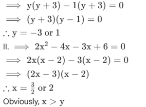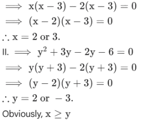 RBI GRADE ‘B’ OFFICER’S EXAM Held on : 17.11.2002 (Part-II)Total Questions: 5041. A shopkeeper sold a T.V. set for Rs. 17,940/-, with a discount of 8% and gained 19.6% If no discount is allowed, what will be his gain percent?(1) 25%(2) 26.4%(3) 24.8%(4) Cannot be determined(5) None of theseCorrect Answer: (5) None of these42. Four of the following five parts numbered 1, 2, 3, 4 and 5 are equal. Which of the following is not equal to the other four.?(1) 24² - 12² + 112 ÷ 14 =(2) 17× 12 + 59 × 4 =(3) 15 × 28 + 20 =(4) 27 ×16 + 56 ÷ 8 =(5) 185 × 6 + 2 − 23 × 5Correct Answer: (4) 27 ×16 + 56 ÷ 8 =43. Which value of x does satisfy the inequality 2x² + x − 3 < 0 ?(1) − 3/2 < x < 1(2) −1< x < 2/3(3) x > 1(4) x < − 2/5(5) None of theseCorrect Answer: (1) − 3/2 < x < 144. What will come in place of the question mark (?) in the following equation ?(1) 4.18(2) 4.41(3) 425(4) 433(5) None of theseCorrect Answer: (4) 433Solution:Taking approximate values.45. A bag contains 2 red, 3 green and 2 blue balls. 2 balls are to be drawn randomly. What is the probability that the balls drawn contain no blue ball?(1) 5/7 (2) 10/21 (3) 2/7(4) 11/21(5) None of theseCorrect Answer: (2) 10/21 46. Determine relation between x and y and then,(1) x < y(2) x > y(3) x ≤ y(4) x ≥ y(5) x = yCorrect Answer: (1) x < ySolution:47. Determine relation between x and y and then,(1) x < y(2) x > y(3) x ≤ y(4) x ≥ y(5) x = yCorrect Answer: (3) x ≤ y48. Determine relation between x and y and then,(1) x < y(2) x > y(3) x ≤ y(4) x ≥ y(5) x = yCorrect Answer: (2) x > ySolution:49. Determine relation between x and y and then,(1) x < y(2) x > y(3) x ≤ y(4) x ≥ y(5) x = yCorrect Answer: (1) x < ySolution:50. Determine relation between x and y and then,(1) x < y(2) x > y(3) x ≤ y(4) x ≥ y(5) x = yCorrect Answer: (4) x ≥ ySolution:Submit Quiz« Previous12345