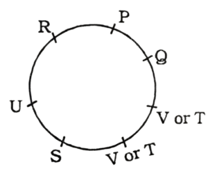 (A) P, Q, R, S, T, U and V are sitting in a circle facing the centre.