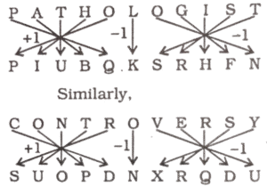 RBI GRADE ‘B’ OFFICER’S EXAM Held on : 2007 (Part-IV)Total Questions: 6011. How many such digits are there in the number 57692483, which after rearranging the digits of the number in descending order from left to right will remain at the same position as before the rearrangement ?(1) None(2) One(3) Two(4) Three(5) More than threeCorrect Answer: (2) OneSolution:5 7 6 9 2 4 8 3 9 8 7 6 5 4 3 212. In a certain code RAIN is written as 8$%6 and MORE is written as 7#8@. How is REMAIN written in that code ?(1) 8@7$%6(2) 7@#$%6(3) #@&$%6(4) #@7$%6(5) None of these.Correct Answer: (1) 8@7$%6Solution:(1) R A I N M O R E↓ ↓ ↓ ↓ ↓ ↓ ↓ ↓8 $ % 6 7 # 8 @.Therefore, R E M A I N↓ ↓ ↓ ↓ ↓ ↓8 @ 7 $ % 613. Five friends were travelling by train between stations A and B. Each one gets down at a different station one after the other. Nitin gets down before Lata and Shikha but not before Sunil. Anil is not the last to get down. Who got down first from the train?(1) Sunil(2) Nitin(3) Shikha(4) Cannot be determined(5) None of theseCorrect Answer: (4) Cannot be determined14. Four of the following five are alike in a certain way and so form a group. Which is the one that does not belong to the group ?(1) Rose(2) Marigold(3) Lotus(4) Hibiscus(5) JasmineCorrect Answer: (4) HibiscusSolution:Except Hibiscus, all others are sweet smelling flowers. Hibiscus is a plant or bush with large, brightly coloured flowers, grown especially in tropical countries.15. Four of the following five are alike in a certain way and so form a group. Which is the one that does not belong to that group ?(1) Food : Hunger(2) Water : Thirst(3) Air : Suffocation(4) Talent : Education(5) Leg : LameCorrect Answer: (4) Talent : EducationSolution:Without food we feel hungry. Without water we feel thirsty. Without air we feel suffocation. Similarly, without leg one is lame.16. In a certain code PATHOLOGIST is written as PIUBQKSRHFN. How is CONTROVERSY written in that code ?(1) SUOPDNXRQDU(2) SUOPDNZTSFW(3) QSMNBPXRQDU(4) QSMNBPZTSFW(5) None of theseCorrect Answer: (1) SUOPDNXRQDUSolution:17. Study the following five numbers and answer the questions given below :517 325 639 841 792What will be last digit of the third number from top when they are arranged in descending order after reversing the position of the digits within each number ?(1) 7(2) 3(3) 5(4) 2(5) None of theseCorrect Answer: (2) 3Solution:517 ⇒ 715325 ⇒ 523639 ⇒ 936841 ⇒ 148792 ⇒ 297Descending order.936 > 715 > 523 > 297 > 148523 ⇒ Last digit18. Study the following five numbers and answer the questions given below :517 325 639 841 792What will be the middle digit of the second lowest number after the position of only the first and the second digits within each number are interchanged?(1) 5(2) 2(3) 7(4) 3(5) None of theseCorrect Answer: (4) 3Solution:According to question517 ⇒ 157325 ⇒ 235639 ⇒ 369841 ⇒ 481792 ⇒ 972157 < 235 < 369 < 481 < 9722 3 519. Study the following five numbers and answer the questions given below :517 325 639 841 792What will be the first digit of the second highest number after the position of only the second and the third digits within each number are interchanged?(1) 7(2) 2(3) 8(4) 9(5) None of theseCorrect Answer: (1) 7Solution:According to question517 ⇒ 571325 ⇒ 352639 ⇒ 693841 ⇒ 814792 ⇒ 729814 > 729 > 693 > 571 > 3527 29↓ First digit20. Study the following information carefully to answer these questions.'A $ B' means 'A is wife of B'.'A # B' means 'A is son of B'.'A%B' means 'A is father of B'.'A ★ B' means 'A is sister of B'.Which of the following expressions represents the relationship 'T is brother of H' ?(1) H★T%K(2) T★H%K(3) H#K%T(4) H★K%T(5) None of theseCorrect Answer: (1) H★T%KSolution:H is sister of T and T is father of K. Therefore, T is brother of H.Submit Quiz« Previous123456Next »