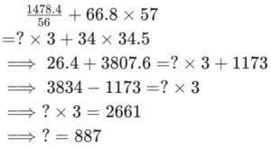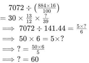 RBI OFFICER GRADE ‘B’ ONLINE EXAM Held on : 25.08.2013 (Part-III)Total Questions: 5021. Read the following bar diagram carefully to answer the questions given below.Marks obtained by five students in different subjects - Maths, English and Science - in an examinationWhich student scored the maximum marks in all the subjects taken together?(1) Rajeev(2) Narendra(3) Amit(4) Veena(5) RameshCorrect Answer: (3) AmitSolution:Marks obtained by Rajeev ⇒ 192; Narendra ⇒ 192; Amit ⇒ 252; Veena ⇒ 201; Ramesh ⇒ 20822. Read the following bar diagram carefully to answer the questions given below.Marks obtained by five students in different subjects - Maths, English and Science - in an examinationThe difference between the average marks obtained by Narendra and Veena is(1) 5(2) 3(3) 4(4) 6(5) 7Correct Answer: (2) 3Solution:Required difference23. Read the following bar diagram carefully to answer the questions given below.Marks obtained by five students in different subjects - Maths, English and Science - in an examinationIf the maximum marks of each subject are 100, what is the approximate percentage of marks got by Ramesh?(1) 67(2) 66(3) 64(4) 69(5) 72Correct Answer: (4) 69Solution:Required percentage24. Read the following bar diagram carefully to answer the questions given below.Marks obtained by five students in different subjects - Maths, English and Science - in an examinationBy what percentage, the marks obtained by Amit in science is less that in Maths?(1) 21(2) 24(3) 22(4) 15(5) 18Correct Answer: (5) 18Solution:Required percentage25. Read the following bar diagram carefully to answer the questions given below.Marks obtained by five students in different subjects - Maths, English and Science - in an examinationThe ratio of marks obtained by all students in maths and science is respectively(1) 89 : 91(2) 23 : 25(3) 25 : 23(4) 93 : 89(5) None of theseCorrect Answer: (4) 93 : 89Solution:Required ratio= 372 : 356= 93 : 8926. What value will come in place of the question mark (?) in the following questions.(1) 60(2) 62(3) 65(4) 55(5) 67Correct Answer: (1) 60Solution:27. What value will come in place of the question mark (?) in the following questions.(1) 0(2) 2(3) 3(4) 4(5) 5Correct Answer: (1) 0Solution:28. What value will come in place of the question mark (?) in the following questions.(1) 785(2) 887(3) 889(4) 989(5) 885Correct Answer: (2) 887Solution:29. What value will come in place of the question mark (?) in the following questions.(1) 26(2) 25(3) 52(4) 130(5) None of theseCorrect Answer: (3) 52Solution:30. What value will come in place of the question mark (?) in the following questions.(1) 353.2184(2) 353.2854(3) 331.54(4) 313.2854(5) 331.2854Correct Answer: (4) 313.2854Solution:0.22 + 0.0054 = ? − 313.06⟹ 0.2254 + 313.06 = ?⟹? = 313.2854Submit Quiz« Previous12345Next »