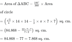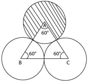 Three equal circles are drawn on a triangle ABC, with points A, B, C as the centres. Radius of each of the circle is equal to half of the side of the triangle ABC. (Figure not to the scale)