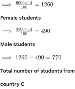 Data regarding number of foreign students (males + females) from different countries- A, B, C, D and E, taking in higher level education in the country XYZ in the year 2014.