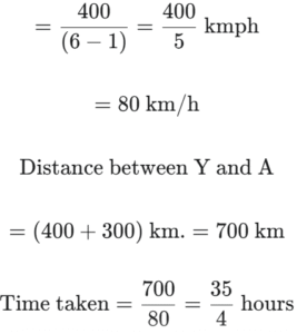 There are four travel points A, X, Y and Z. A bus covers a total distance of 300 km between points Z and A in 5 hours at an average speed of 75 km/h. An SUV car covers a total distance of 400 km between points Y and Z in 6 hours at an average speed of 100 km/h. A Sedan car covers a total distance of 400 km between points X and Y in 6 hours at an average speed of 80 km/h.