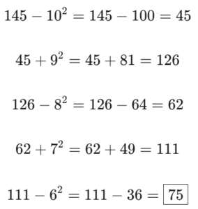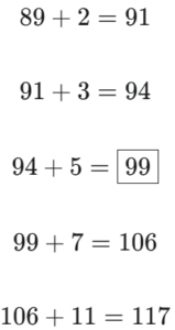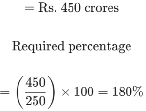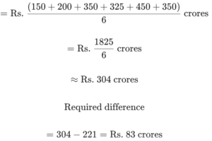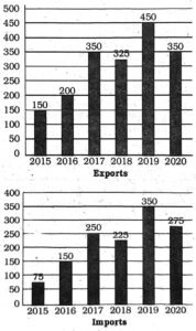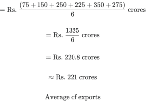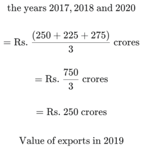 RBI OFFICER GRADE ‘B’ PHASE-I EXAM Held on : 06.03.2021 (Shift-I) (Part-II)Total Questions: 5021. The following bar diagrams show the details about the value of imports and exports (in Rs. crores) by a company from 2015 to 2020. Consider the bar graphs and answer the questions given below :From the questions (21-25) In which of the following year(s) was the difference between the value of exports and the value of imports exactly Rs. 100 crores?(1) 2015(2) 2016(3) 2017(4) 2018(5) More than one yearCorrect Answer: (5) More than one yearSolution:Difference between the exports and export in Rs. crores:Year 2015 ⇒ 150 - 75 = 75Year 2016 ⇒ 200 - 150 = 50Year 2017 ⇒ 350 - 250 = 100Year 2018 ⇒ 325 - 225 = 100Year 2019 ⇒ 450 - 350 = 100Year 2020 ⇒ 350 - 275 = 75In each of the years 2017, 2018 and 2019 the difference between exports and import is Rs. 100 crores.22. Study the above information carefully and answer the questions.What was the percentage increase in the value of exports from 2018 to 2019 ?(1) 27%(2) 38%(3) 34%(4) 21%(5) 42%Correct Answer: (2) 38%Solution:Required percentage increase 23. Study the above information carefully and answer the questions.The value of exports in 2017 was exactly what percent of the value of imports in the same year?(1) 100%(2) 125%(3) 140%(4) 160%(5) 130%Correct Answer: (3) 140%Solution:Required percent 24. Study the above information carefully and answer the questions.What was the difference between the value of average exports and the value of average imports in the given years? (In Rs. crores).(1) 75(2) 77(3) 83(4) 85(5) 72Correct Answer: (3) 83Solution: Average of imports 25. Study the above information carefully and answer the questions.The value of exports in 2019 was what percent of the average value of imports in the years 2017, 2018 and 2020?(1) 125%(2) 180%(3) 150%(4) 145%(5) 165%Correct Answer: (2) 180%Solution:Average value of imports in 26. What will come in the place of question mark (?) in each of the following number series?6, 6, 18, 90, ?, 5670(1) 1200 (2) 980(3) 940(4) 830(5) 630Correct Answer: (5) 630Solution:The pattern is : 27. What will come in the place of question mark (?) in each of the following number series?145, 45, 126, 62, 111, ?(1) 120(2) 123(3) 75(4) 90(5) 85Correct Answer: (3) 75Solution:The pattern is : 28. What will come in the place of question mark (?) in each of the following number series??, 198, 294, 388, 480, 570(1) 125 (2) 130(3) 110(4) 115(5) 100Correct Answer: (5) 100Solution:The pattern is : 29. What will come in the place of question mark (?) in each of the following number series??, 30, 62, 122, 246(1) 20 (2) 18 (3) 10(4) 16(5) 12Correct Answer: (4) 16Solution:The pattern is : 30. What will come in the place of question mark (?) in each of the following number series?89, 91, 94, ?, 106, 117(1) 96(2) 100(3) 101(4) 99(5) 104Correct Answer: (4) 99Solution:The pattern is : Submit Quiz« Previous12345Next »