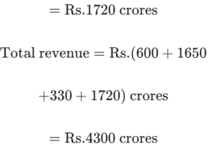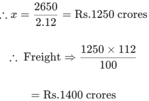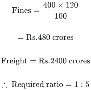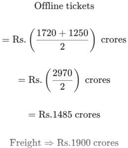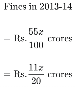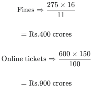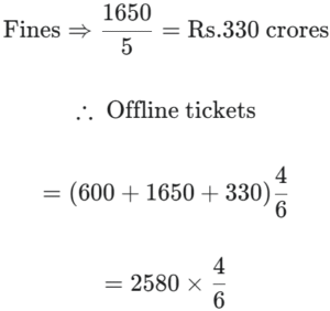 FY 2013-14: Total revenue collected was Rs. 3500 crore. Fines (Rs. x crore) comprised 7 ⁶⁄₇% of the total revenue and revenue from on line ticket sales was Rs. 'x + 300' crore. Revenue from freight was 12% more than that from offline ticket sales.