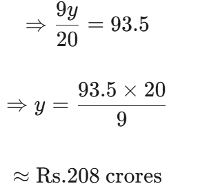 Revenue from fines comprised two sources- vendors and passengers. Fines from passengers (Rs. y crore) remained constant in FY 2013-14 and FY 2014-15. If the fine from vendors in FY 2013-14 was 55% of that in FY 2014-15, what was the value of y?