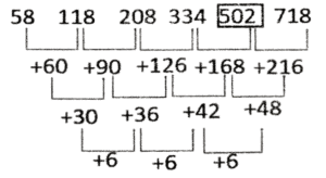 Series – Railway Reasoning part – 2Total Questions: 5041. 360, ?, 180, 60, 15, 3 [Group - D 01/09/2022 ( Afternoon)](a) 270(b) 180(c) 240(d) 360Correct Answer: (d) 360Solution:42. AJM72, DMP81, GPS90, JSV99, ? [Group - D 01/09/2022 ( Afternoon)](a) MVJ105(b) MVY108(c) MSV105(d) MVJ108Correct Answer: (b) MVY10843. 1, 0, 2, 1, 3, 2, 4, 5, 26, ?, 677 [Group - D 01/09/2022 ( Afternoon)](a) 47(b) 26(c) 6(d) 52Correct Answer: (c) 6Solution:44. Select the combination of letters that when placed from left to right in the same sequence in the blanks of the given series will complete the series. [Group - D 01/09/2022 ( Evening)]XY_YZ_ XYV__ABXY ZAB YYZA(a) YABYZYXYXY(b) YZBYZYXYXB(c) XABYZYXYXB(d) YABYZYXYXBCorrect Answer: (d) YABYZYXYXB45. 99, 101, 104, 109, 116, ? [Group - D 01/09/2022 ( Evening)](a) 132(b) 127(c) 124(d) 128Correct Answer: (b) 127Solution:In the following series the difference between the numbers is prime numbers 46. GP32S, LU35X, QZ38G, VE41H, ? [Group - D 02/09/2022 ( Morning)](a) JA44M(b) M44J(c) AJ44M(d) MJA42ACorrect Answer: (c) AJ44MSolution:47. 58, 118, 208, 334, ?, 718 [Group - D 02/09/2022 ( Morning)](a) 512(b) 510(c) 502(d) 524Correct Answer: (c) 502Solution:48. ABCD, ABCD1, ABCD1D1, AB1C1D1, A1B1C1D1, A1B1C1D2, ? [Group - D 02/09/2022 ( Afternoon)](a) A1B1C2D12(b) A1B1C2D11(d) A1B1C2D2(c) A1B1C2D22Correct Answer: (d) A1B1C2D2Solution:In this series, add 1 from the last in each alphabet. 49. 188, 187, 183, 174, 158, ? [Group - D 02/09/2022 ( Evening)](a) 133(b) 129(c) 137(d) 139Correct Answer: (a) 133Solution:From the above diagram we can say that 133 is the number which will replace the question mark(?).50. 3Z6, 8Y12, 15X18, 24W24, 35V30, ? [Group - D 02/09/2022 ( Evening)](a) 48V36(b) 36V48(c) 48U36(d) 36U48Correct Answer: (c) 48U36Solution:Submit Quiz« Previous12345