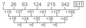 Series – Railway Reasoning part – 14Total Questions: 5021. Find the wrong number in the given series. [RRB JE 29/05/2019 (Morning)]428, 413, 398, 384, 368, 353(a) 428(b) 353(c) 384(d) 398Correct Answer: (c) 384Solution:22. 8, 30, 74, 162, ? [RRB JE 29/05/2019 (Evening)](a) 316(b) 301(c) 349(d) 338Correct Answer: (d) 338Solution:23. YP, TK, ? , MD, KB [RRB JE 29/05/2019 (Evening)](a) RI(b) PG(c) NF(d) UVCorrect Answer: (b) PGSolution:24. Find the wrong number in the following series. [RRB JE 30/05/2019 (Morning)]2, 20, 54, 110, 182(a) 54(b) 20(c) 110(d) 182Correct Answer: (a) 54Solution:25. 684, 114, 57, 9.5, ? [RRB JE 31/05/2019 (Evening)](a) 5.18(b) 4.75(c) 5.82(d) 4.95Correct Answer: (b) 4.75Solution:26. ? , PSV, EHK, TWZ, ILO [RRB JE 01/06/2019 (Morning)](a) BEH(b) IMP(c) ADG(d) ZCFCorrect Answer: (c) ADGSolution:27. 7, 26, 63, 124, 215, 342, ? [RRB JE 01/06/2019 (Afternoon)](a) 511(b) 421(c) 391(d) 481Correct Answer: (a) 511Solution:28. 5, 6, 8, 12, 20, 36, ? [RRB JE 01/06/2019 (Afternoon)](a) 68(b) 72(c) 81(d) 75Correct Answer: (a) 68Solution:29. ab, ba, abc, cba, abcd, ? [RRB JE 01/06/2019 (Evening)](a) dcba(b) bacd(c) cabd(d) acbdCorrect Answer: (a) dcbaSolution:30. Find the missing group of alphabets in the following series. [RRB JE 02/06/2019 (Morning)]gfe_ig _eii_fei___ gf ____ ii(a) ifgie(b) eifgi(c) figie(d) ifigeCorrect Answer: (a) ifgieSolution:Pattern follows:- gfe i i / g f eii / g fei i / gf e iiSubmit Quiz« Previous12345Next »