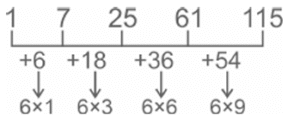 Series – Railway Reasoning part – 7Total Questions: 5041. 1, 1, 3, 5, 11, 21, 43, ? [RRB NTPC 17/01/2021 (Evening)](a) 55(b) 86(c) 85(d) 87Correct Answer: (c) 85Solution:42. z1, x4, v9, t16, ? [RRB NTPC 18/01/2021 (Morning)](a) t26(b) v25(c) s24(d) r25Correct Answer: (d) r25Solution:In the given series, the letter is decreasing by 2 and the number is a square of consecutive natural numbers. z - 2 = x, x - 2 = v, v - 2 = t, t - 2 = r 1² = 1 , 2² = 4 , 3² = 9 , 4² = 16 , 5² = 25 So, the next term will be : r25 .43. 8, 17, 35, 71, ? [RRB NTPC 18/01/2021 (Morning)](a) 141(b) 133(c) 143(d) 142Correct Answer: (c) 143Solution:44. ab, cc, ed, ge, ? [RRB NTPC 18/01/2021 (Morning)](a) id(b) gf(c) if(d) hfCorrect Answer: (c) ifSolution:45. 0, 6, 20, 42, ? [RRB NTPC 18/01/2021 (Morning)](a) 68(b) 86(c) 70(d) 72Correct Answer: (d) 72Solution:46. Z, V, R, ?, J, F [RRB NTPC 18/01/2021 (Evening)](a) P(b) K(c) N(d) MCorrect Answer: (c) NSolution:The difference between the consecutive letters is = (Z - V) = (V - R) = (J - F) = 4 So, the Fourth term/ letter will be R - 4 = J + 4 = N47. Select the combination of numbers from the given options, that when sequentially placed in the blanks of the given series will complete the series. [RRB NTPC 19/01/2021 (Morning)]1, 2, 4 / 2, 3, 36 /__, ____, ____(a) 2, 5, 100(b) 3, 4, 144(c) 3, 5, 225(d) 4, 2, 64Correct Answer: (b) 3, 4, 144Solution:1² × 2² = 4 2² × 3² = 36 Similarly, in option (b) 3² × 4² = 14448. 6, 16, 27, ? [RRB NTPC 19/01/2021 (Morning)](a) 36(b) 39(c) 38(d) 35Correct Answer: (b) 39Solution:16 - 6 = 10, 27 - 16 = 11 So next term is 27 + 12 = 3949. Select the combination of numbers, from the given options, that when sequentially placed in the blanks of the given series will complete the series. [RRB NTPC 19/01/2021 (Morning)]1, 7, 10, 4, 1, ___, ___(a) 8, 11(b) 6, 3(c) 9, 16(d) 7, 10Correct Answer: (d) 7, 10Solution:1+ 6 = 7, 7 + 3 = 10 , 10 - 6 = 4 , 4 - 3 = 1 Hence, next absolute difference will also be 6 and 3. first number = 1 + 6 = 7 Second number = 7 + 3 = 10,50. Identify the number from the given options, that does NOT belong to the following series. [RRB NTPC 19/01/2021 (Morning)]1, 7, 25, 61, 125(a) 61(b) 1(c) 125(d) 25Correct Answer: (c) 125Solution:Submit Quiz« Previous12345