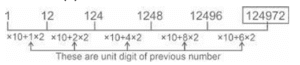 Series – Railway Reasoning part – 8Total Questions: 5011. A, A, B, D, ? [RRB NTPC 21/01/2021 (Morning)](a) H(b) E(c) G(d) JCorrect Answer: (c) GSolution:12. 12496, 12448, 12424,? [RRB NTPC 21/01/2021 (Morning)](a) 12464(b) 12400(c) 6212(d) 12412Correct Answer: (d) 12412Solution:13. 4 : 9, 25 : 49, ? , 289 : 361 [RRB NTPC 21/01/2021 (Morning)](a) 729 : 64(b) 225 : 245(c) 121 : 169(d) 49 : 216Correct Answer: (c) 121 : 169Solution:So the required ratio = 121 : 16914. A1, B27, C125, ? [RRB NTPC 21/01/2021 (Evening)](a) D216(b) D343(c) C343(d) D516Correct Answer: (b) D343Solution:Logic - A + 1 = B , B + 1 = C , C +1 = D 1³ = 1 , 3³ = 27 , 5³ = 125 ,7³ = 343 (cube of odd numbers ) 15. A, D , I, ?, Y [RRB NTPC 21/01/2021 (Evening)](a) Q(b) R(c) P(d) NCorrect Answer: (c) PSolution:Logic - addition with odd numbers A + 3 = D , D + 5 = I , I + 7= P , P + 9 = Y16. 2, 0, 10, 2, 30, 6, 68, 12, ? , ? [RRB NTPC 21/01/2021 (Evening)](a) 120 ; 20(b) 98 ; 24(c) 130 ; 20(d) 130 ; 30Correct Answer: (c) 130 ; 20Solution:Logic - alternate series 2, 0, 10, 2, 30, 6, 68, 12, ? , ? 1³ + 1 = 2 2³ + 2 = 8 + 2 = 10 3³ + 3 = 27 + 3 = 30 4³ + 4 = 64 + 4 = 68 5³ + 5 = 125 + 5 = 130 And 0 + 2 = 2 , 2 + 4 = 6 , 6 + 6 = 12 , 12 + 8 = 2017. 44, 37, 29, ?. [RRB NTPC 22/01/2021 (Morning)](a) 16(b) 20(c) 55(d) 11Correct Answer: (b) 20Solution:44 − 37 = 7 37 − 29 = 8 29 − x = 9 x = 2018. 1,12,124,1248,12496, ?. [RRB NTPC 22/01/2021 (Morning)](a) 124982(b) 124962(c) 124972(d) 124978Correct Answer: (c) 124972Solution:Logic → (previous number is multiplied by 10 + unit digit multiply with 2) 12496 10 + 6 2 = 12497219. Select the combination of letters that when sequentially placed in the blanks will create a logical pattern. [RRB NTPC 22/01/2021 (Evening)]abc _ _ dcded _ _ e _ b(a) bceaa(b) cdeac(c) bceac(d) deabcCorrect Answer: (a) bceaaSolution:a b c b c d c d e d e a e a b20. Select the correct option that can fill the blank in the below series. [RRB NTPC 22/01/2021 (Evening)]96, 86, 106, 76, ___, 106, 56, 46, 106,(a) 46(b) 106(c) 56(d) 66Correct Answer: (d) 66Solution:96, 86, 106, 76, ___, 106, 56, 46, 106 Logic : 96 ₋ 86 = 10 76 ₋ 66 = 10 56 ₋ 46 = 10Submit Quiz« Previous12345Next »