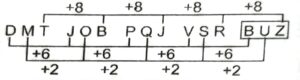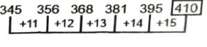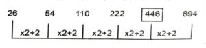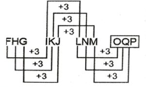 Series (SSC CGL 2022 Tier – 1)(Part – I)Total Questions: 5011. 2, 4, 10, 28, ?, 244 [S.S.C CGL 02/12/2022 (1st Shift)](a) 94(b) 90(c) 88(d) 82Correct Answer: (d) 82Solution:The pattern followed here is :Hence, "82" is the correct answer.12. ABCD, HGLO, OLUZ, VQDK, ? [S.S.C CGL 02/12/2022 (1st Shift)](a) RTQV(b) CYQR(c) CMVQ(d) CVMVCorrect Answer: (d) CVMVSolution:The pattern followed here is :Hence, "CVMV" is the correct answer.13. LAT, NDR, PGP, ?, TML [S.S.C CGL 02/12/2022 (2nd Shift)](a) SKO(b) RKN(c) SJO(d) RJNCorrect Answer: (d) RJNSolution:The pattern followed here is :Hence, "RJN" is the correct answer.14. 345, 356, 368, 381, 395, ? [S.S.C CGL 02/12/2022 (2nd Shift)](a) 409(b) 408(c) 406(d) 410Correct Answer: (d) 410Solution:The pattern followed here is :Hence, "410" is the correct answer.15. DMT, JOB, PQJ, VSR, ? [S.S.C CGL 02/12/2022 (2nd Shift)](a) BZY(b) ZYM(c) BUZ(d) BZMCorrect Answer: (c) BUZSolution:The pattern followed here is :Hence, "BUZ" is the correct answer.16. 111, 222, 444, ?, 1776, 3552 [S.S.C CGL 02/12/2022 (3rd Shift)](a) 999(b) 888(c) 1780(d) 1770Correct Answer: (b) 888Solution:The pattern followed here is :Hence, "888" is the correct answer.17. CZNM, FXOL, IVPK, ?, ORRI [S.S.C CGL 02/12/2022 (3rd Shift)](a) LSQJ(b) LTRK(c) LSQK(d) LTQJCorrect Answer: (d) LTQJSolution:The pattern followed here is :Hence, "LTQJ" is the correct answer.18. 1, 22, 44, 67, 91, ? [S.S.C CGL 03/12/2022 (1st Shift)](a) 116(b) 106(c) 115(d) 118Correct Answer: (a) 116Solution:The pattern followed here is :Hence, "116" is the correct answer.19. FHG, IKJ, LNM, ? [S.S.C CGL 03/12/2022 (2nd Shift)](a) QOP(b) OPQ(c) OQP(d) PRQCorrect Answer: (c) OQPSolution:The pattern followed here is :Hence, "OQP" is the correct answer.20. 26, 54, 110, 222, ?, 894 [S.S.C CGL 03/12/2022 (2nd Shift)](a) 446(b) 442(c) 440(d) 444Correct Answer: (a) 446Solution:The pattern followed here is :Hence, "446" is the correct answer.Submit Quiz« Previous12345Next »