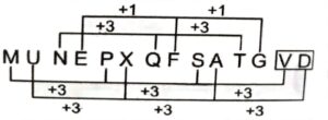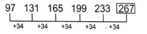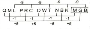 Series (SSC CGL 2022 Tier – 1)(Part – I)Total Questions: 5031. 729, 243, ?, 27, 9, 3 [S.S.C CGL 05/12/2022 (2nd Shift)](a) 54(b) 78(c) 81(d) 36Correct Answer: (c) 81Solution:The pattern followed here is :Hence, "81" is the correct answer.32. TMT, ZOB, FQJ, LSR, ? [S.S.C CGL 05/12/2022 (2nd Shift)](a) RYO(b) RZO(c) RUZ(d) RZQCorrect Answer: (c) RUZSolution:The pattern followed here is :Hence, "RUZ" is the correct answer.33. WNM, ULO, SJQ, QHS, ? [S.S.C CGL 05/12/2022 (2nd Shift)](a) OFU(b) PFS(c) OGU(d) PGTCorrect Answer: (a) OFUSolution:The pattern followed here is :Hence, "OFU" is the correct answer.34. 1, 3, 6, 18, 36, 108, ? [S.S.C CGL 05/12/2022 (3rd Shift)](a) 196(b) 224(c) 236(d) 216Correct Answer: (d) 216Solution:The pattern followed here is :Hence, "216" is the correct answer.35. BLJS, FOLT, ?, NUPV, RXRW [S.S.C CGL 05/12/2022 (3rd Shift)](a) KRMU(b) JRNU(c) KRNU(d) JRMUCorrect Answer: (b) JRNUSolution:The pattern followed here is :Hence, "JRNU" is the correct answer.36. CABQ, CEJC, CIRO, CMZA, ? [S.S.C CGL 05/12/2022 (3rd Shift)](a) CQIM(b) CMNP(c) CQHM(d) CMRTCorrect Answer: (c) CQHMSolution:The pattern followed here is :Hence, "CQHM" is the correct answer.37. QML, PRC, OWT, NBK, ? [S.S.C CGL 05/12/2022 (4th Shift)](a) GMR(b) MGB(c) MBG(d) GQRCorrect Answer: (b) MGBSolution:The pattern followed here is :Hence, "MGB" is the correct answer.38. 97, 131, 165, 199, 233, ? [S.S.C CGL 05/12/2022 (4th Shift)](a) 260(b) 273(c) 251(d) 267Correct Answer: (d) 267Solution:The pattern followed here is :Hence, "267" is the correct answer.39. HFK, KHM, ?, QLQ, TNS [S.S.C CGL 05/12/2022 (4th Shift)](a) NJO(b) OKN(c) MJN(d) MKPCorrect Answer: (a) NJOSolution:The pattern followed here is :Hence, "NJO" is the correct answer.40. MU, NE, PX, QF, SA, TG, ? [S.S.C CGL 06/12/2022 (1st Shift)](a) UC(c) WD(c) VD(d) VCCorrect Answer: (c) VDSolution:The pattern followed here is :Hence, "VD" is the correct answer.Submit Quiz« Previous12345Next »