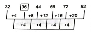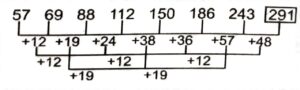 Series (SSC CGL 2023 Tier – 1)Total Questions: 5951. 57, 69, 88, 112, 150, 186, 243, ? [S.S.C CGL 25/07/2023 (3rd shift)](a) 286(c) 291(b) 289(d) 300Correct Answer: (c) 291Solution:The pattern followed here is :Hence, "291" is the correct answer.52. ST_FIR_STNF_RGSTN_IRG_ _NFI_G [SSC CGL 25/07/2023 (4th shift)](a) NGSFITR(b) NGFISRT(c) NGIFSTR(d) NGISFRTCorrect Answer: (c) NGIFSTRSolution:The correct order will be: STNFIRG → STNFIRG → STNFRIG → STNFIRG53. 32, ?, 44, 56, 72, 92 [S.S.C CGL 25/07/2023 (4th shift)](a) 34(b) 36(c) 38(d) 40Correct Answer: (b) 36Solution:The pattern followed here is :Hence, " 36" is the correct answer.54. AXY, EZW, ICU, OHS, ? [S.S.C CGL 25/07/2023 (4th shift)](a) UOQ(b) UPQ(c) UNQ(d) VOQCorrect Answer: (a) UOQSolution:The pattern followed here is :Hence, "UOQ" is the correct answer.55. 2, 10, 40, 120, 240, ? [S.S.C CGL 26/07/2023 (2nd shift)](a) 480(b) 300(c) 360(d) 240Correct Answer: (d) 240Solution:The pattern followed here is :Hence, "240" is the correct answer.56. GTCL, KWEM, OZGN, SCIO, ? [S.S.C CGL 26/07/2023 (3rd shift)](a) VGLQ(b) WKFD(c) VJEF(d) WFKPCorrect Answer: (d) WFKPSolution:The pattern followed here is :Hence, "WFKP" is the correct answer.57. 2, 6, 9, 27, 30, 90, ? [S.S.C CGL 26/07/2023 (4th shift)](a) 85(b) 88(c) 90(d) 93Correct Answer: (d) 93Solution:The pattern followed here is :Hence, "93" is the correct answer.58. AJRX, CNXF, ERDN, ?, IZPD [S.S.C CGL 27/07/2023 (1st shift)](a) HVJV(b) GVJV(c) HVIT(d) GVKVCorrect Answer: (b) GVJVSolution:The pattern followed here is :Hence, "GVJV" is the correct answer.59. [1/176], [1/88], ? , [1/22], [1/11] [S.S.C CGL 27/07/2023 (1st shift)](a) [1/32](b) [1/44](c) [1/48](d) [1/42]Correct Answer: (b) [1/44]Solution:The pattern followed here is :Hence, "[1/44]" is the correct answer.Submit Quiz« Previous123456