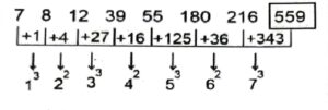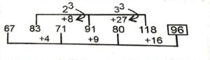 Series (SSC CHSL 2021 Tier – 1)Total Questions: 5011. ERKV, HYVK, ?, NMRO, QTCD [S.S.C CHSL 25/05/2022 (Evening)](a) KFGZ(b) KSEV(c) FNQI(d) KXGWCorrect Answer: (a) KFGZSolution:The pattern followed here is :Hence, "KFGZ" is the correct answer.12. 14, 14, 12, 36, 32, 160, ? [S.S.C CHSL 25/05/2022 (Evening)](a) 150(b) 166(c) 154(d) 145Correct Answer: (c) 154Solution:The pattern followed here is :? = 160 - 6 = 154Hence, "154" is the correct answer.13. DE _ WG _ EF _ GDEFU _ D _ FTG [S.S.C CHSL 26/05/2022 (Morning)](a) FDGVE(b) FDVGE(c) DFFEV(d) DFVGFCorrect Answer: (b) FDVGESolution:The pattern followed here is :Fourth letter in the word decreases by 1. FDVGE → D E F W G / D E F V G / D E F U G / D E F T GHence, "FDVGE" is the correct answer.14. XAPE, BIBU, ?, JYZA, NGLQ [S.S.C CHSL 26/05/2022 (Morning)](a) YDVQ(b) PSFZ(c) FQNK(d) QNARCorrect Answer: (c) FQNKSolution:The pattern followed here is :Hence, "FQNK" is the correct answer.15. YXV, TSQ, ONL, JIG, ? [S.S.C CHSL 27/05/2022 (Afternoon)](a) BED(b) EBD(c) EDB(d) DBECorrect Answer: (c) EDBSolution:The pattern followed here is :Hence, "EDB" is the correct answer.16. 67, 83, 71, 91, 80, 118, ? [S.S.C CHSL 27/05/2022 (Afternoon)](a) 116(b) 96(c) 100(d) 98Correct Answer: (b) 96Solution:The pattern followed here is :Hence, "96" is the correct answer.17. 1244, 624, 314, ?, 81.5, 42.75 [S.S.C CHSL 27/05/2022 (Evening)](a) 156(b) 159(c) 155.5(d) 157Correct Answer: (b) 159Solution:The pattern followed here is :Hence, "159" is the correct answer.18. 7, 8, 12, 39, 55, 180, 216, ? [S.S.C CHSL 27/05/2022 (Evening)](a) 555(b) 559(c) 595(d) 599Correct Answer: (b) 559Solution:The pattern followed here is :Hence, "559" is the correct answer.19. BE _ KDF _ HKDJEH _ D _ EHKD [S.S.C CHSL 30/05/2022 (Morning)](a) JPKB(b) HEKN(c) HBPY(d) ILPKCorrect Answer: (b) HEKNSolution:The pattern followed here is :For the first letter of each part: B + 4 → F, F + 4 → J, J + 4 → NHEKN → B E H K D / F E H K D / J E H K D / N E H K DHence, "HEKN" is the correct answer.20. 19, 114, 119, ?, 479, 958 [S.S.C CHSL 30/05/2022 (Morning)](a) 378(b) 452(c) 296(d) 476Correct Answer: (d) 476Solution:The pattern followed here is :Hence, "476" is the correct answer.Submit Quiz« Previous12345Next »