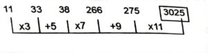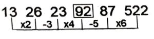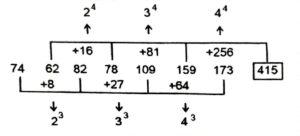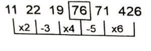 Series (SSC CHSL 2021 Tier – 1)Total Questions: 5021. EMXB, ?, YGRV, VDOS, SALP [S.S.C CHSL 31/05/2022 (Morning)](a) BYJU(b) JBUY(c) YUBJ(d) BJUYCorrect Answer: (d) BJUYSolution:The pattern followed here is :Hence, "BJUY" is the correct answer.22. 5, 16, 28, 36, 71, 90, 234, 342, ? [S.S.C CHSL 31/05/2022 (Morning)](a) 739(b) 793(c) 893(d) 839Correct Answer: (b) 793Solution:The pattern followed here is :Hence, "793" is the correct answer.23. tu _ _ x _ _ _ uu _ _ xy _ _ _ vxx _ [S.S.C CHSL 31/05/2022 (Morning)](a) u v x y u v x t u u y(b) u v x x t v x t u u y(c) u v x y t v x t u u y(d) u v x y t v x t u u uCorrect Answer: (c) u v x y t v x t u u ySolution:The pattern followed here is :Hence, "u v x y t v x t u u y" is the correct answer.24. 12, 32, 123, 609, ? [S.S.C CHSL 31/05/2022 (Morning)](a) 3654(b) 3054(c) 3045(d) 3647Correct Answer: (d) 3647Solution:The pattern followed here is :Hence, "3647" is the correct answer.25. XYZA, YACE, ?, AEIM, BGLQ [S.S.C CHSL 31/05/2022 (Afternoon)](a) ZCFI(b) ZCIF(c) ZCDE(d) ZCEFCorrect Answer: (a) ZCFISolution:The pattern followed here is :Hence, "ZCFI" is the correct answer.26. 13, 26, 23, ?, 87, 522 [S.S.C CHSL 31/05/2022 (Afternoon)](a) 95(b) 94(c) 90(d) 92Correct Answer: (d) 92Solution:The pattern followed here is :Hence, "92" is the correct answer.27. 74, 62, 82, 78, 109, 159, 173, ? [S.S.C CHSL 01/06/2022 (Morning)](a) 223(b) 375(c) 415(d) 298Correct Answer: (c) 415Solution:The pattern followed here is :Hence, "415" is the correct answer.28. QESC, ?, QOSM, QTSR, QYSW [S.S.C CHSL 01/06/2022 (Morning)](a) RLSJ(b) QJSH(c) QIRG(d) RKSICorrect Answer: (b) QJSHSolution:The pattern followed here is :Hence, "QJSH" is the correct answer.29. 11, 33, 38, 266, 275, ? [S.S.C CHSL 01/06/2022 (Afternoon)](a) 3030(b) 3035(c) 3025(d) 3020Correct Answer: (c) 3025Solution:The pattern followed here is :Hence, "3025" is the correct answer.30. 11, 22, 19, ?, 71, 426 [S.S.C CHSL 01/06/2022 (Afternoon)](a) 76(b) 80(c) 82(d) 77Correct Answer: (a) 76Solution:The pattern followed here is :Hence, "76" is the correct answer.Submit Quiz« Previous12345Next »