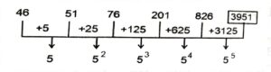 Series (SSC CHSL 2022 Tier – 1)Total Questions: 3011. WX_WW_ _Y_W_WXX_Y_Y [SSC CHSL 13/03/2023 (2nd Shift)](a) WYXYWXY(b) YXYYWXX(c) WXXYXWW(d) YXXYWXYCorrect Answer: (d) YXXYWXYSolution:WXY → WWXXYY → WWWXXXYYY12. _VU_UVUW_VU_ [SSC CHSL 13/03/2023 (3rd Shift)](a) UWUW(b) UVUW(c) WWWW(d) VVUUCorrect Answer: (a) UWUWSolution:u v u w → u v u w → u v u w13. 46, 51, 76, 201, 826, ? [S.S.C CHSL 13/03/2023 (3rd Shift)](a) 3757(b) 3951(c) 4853(d) 3631Correct Answer: (b) 3951Solution:The pattern followed here is :Hence, "3951" is the correct answer.14. 42, 163, 307, 476, ? [S.S.C CHSL 13/03/2023 (4th Shift)](a) 648(b) 632(c) 684(d) 672Correct Answer: (d) 672Solution:The pattern followed here is :Hence, "672" is the correct answer.15. jtm_r_jt_prs_tmpr_j_mprs [SSC CHSL 14/03/2023 (4th Shift)](a) psmjst(b) pssjst(c) psmjts(d) pmsjstCorrect Answer: (a) psmjstSolution:jtmprs → jtmprs → jtmprs → jtmprs16. mc_bcm_cbbc_m_bbcm [SSC CHSL 15/03/2023 (1st Shift)](a) mccb(b) bmmc(c) cbmb(d) bcmbCorrect Answer: (b) bmmcSolution:m c b b c m → m c b b c m → m c b b c m17. RCMG, VWUW, ZQCM, DKKC, ? [S.S.C CHSL 15/03/2023 (2nd Shift)](a) HFQS(b) SMRQ(c) HMRQ(d) HESSCorrect Answer: (d) HESSSolution:The pattern followed here is :Hence, "HESS" is the correct answer.18. no_m_l_o_m_ln_r_al [SSC CHSL 15/03/2023 (3rd Shift)](a) ranraom(b) manrmao(c) noamrna(d) narormraCorrect Answer: (a) ranraomSolution:normal → normal → normal19. MRNG, MVVS, MZDE, MDLQ, ? [S.S.C CHSL 15/03/2023 (4th Shift)](a) MHTC(b) MHRT(c) MGTC(d) MHTDCorrect Answer: (a) MHTCSolution:The pattern followed here is :Hence, "MHTC" is the correct answer.20. 2, 4, 12, 48, ? [S.S.C CHSL 17/03/2023 (2nd Shift)](a) 72(b) 140(c) 240(d) 120Correct Answer: (c) 240Solution:The pattern followed here is :Hence, "240" is the correct answer.Submit Quiz« Previous123Next »